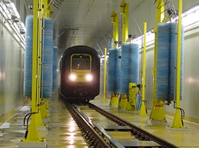 鐵路列車自動清洗機可實現對列車車廂、火車頭等外面進行全面、徹底的自動清洗,設備主要由噴淋系統、洗刷系統、干燥系統、水處理系統(選配)、預警系統及控制系統等組成,可通過噴淋濕潤、預備洗刷、洗滌洗刷、漂洗洗刷和吹掃干燥等不同的清潔方式,配合列車勻速通過清洗工作場地除去列車表面的塵埃和污垢,達到運營列車潔凈要求。[查看詳情]