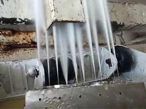 高壓水清洗裝置是利用高壓泵產(chǎn)生的水壓力,直接沖擊軋輥表面上附著的鋅層,水對(duì)鋅層滲透、剪切、壓縮、破碎,并引起裂紋擴(kuò)散和水楔作用,造成大量裂縫擴(kuò)散,從而將軋輥表面污垢清除掉。[查看詳情]